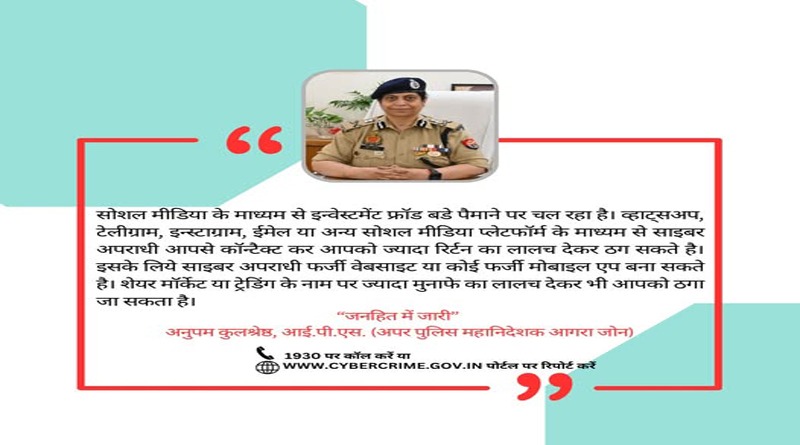 सोशल मीडिया पर बढ़ रहे इन्वेस्टमेंट फ्रॉड से रहें सतर्क – ए.डी.जी जोन आगरा |